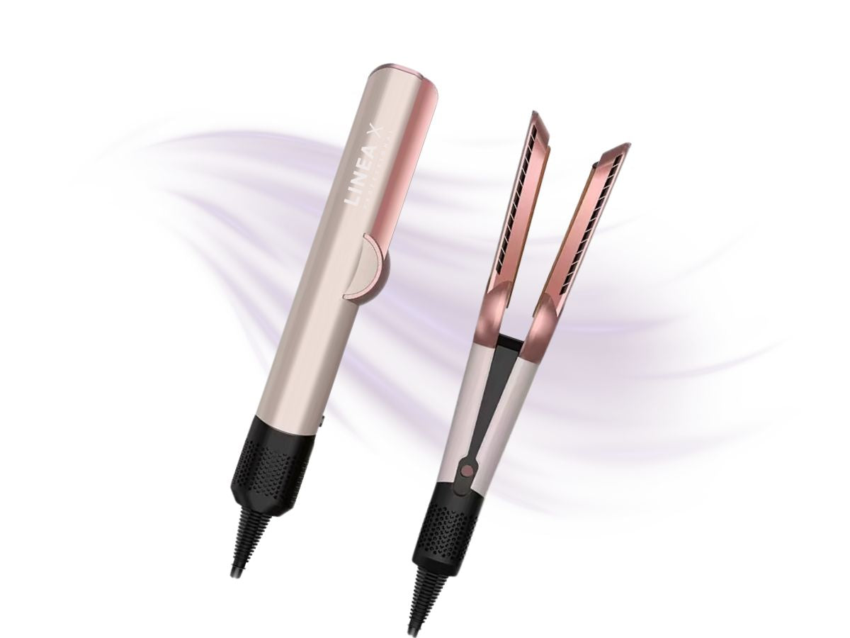 Вместо нагорещени плочи, уредът използва високоскоростен въздушен поток, който оформя косата по нежен начин и помага да се избегне изтощаване и прегряване.
